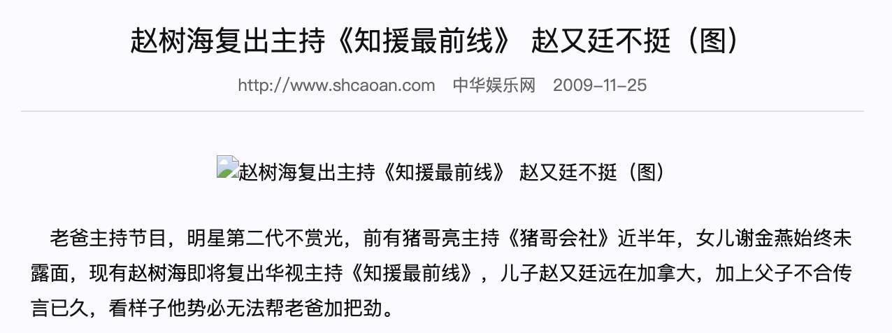同时,还有媒体传出,赵树海在录节目时经常臭脸,骂身边的工作人员。
