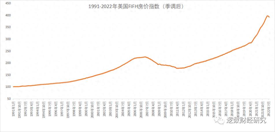 美国房价31年上涨2.92倍,1991-2022年美国FIFH房价指数数据