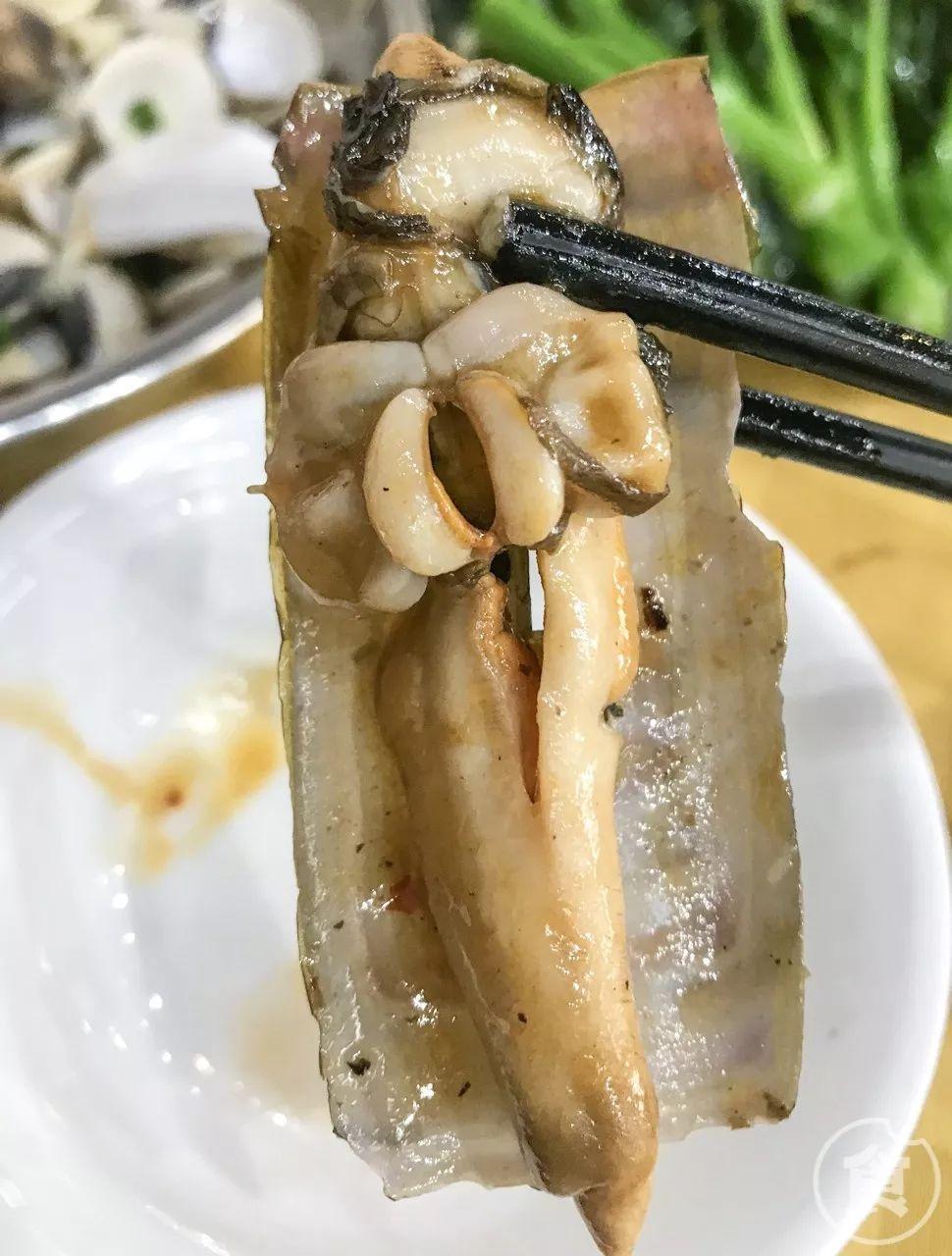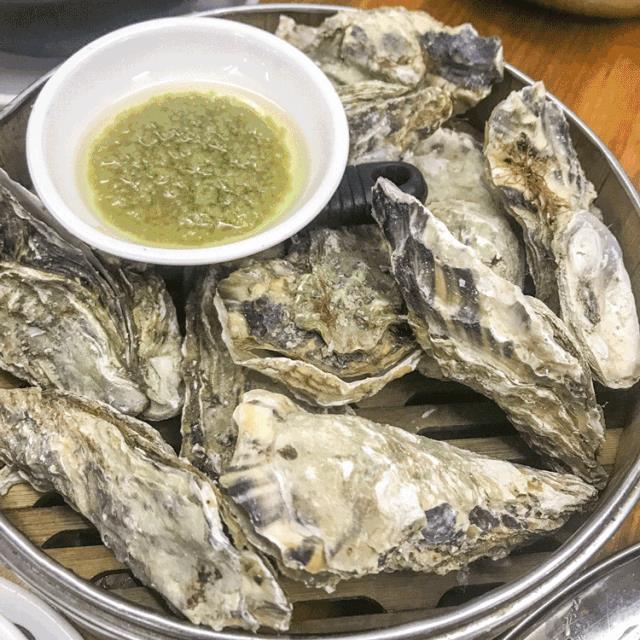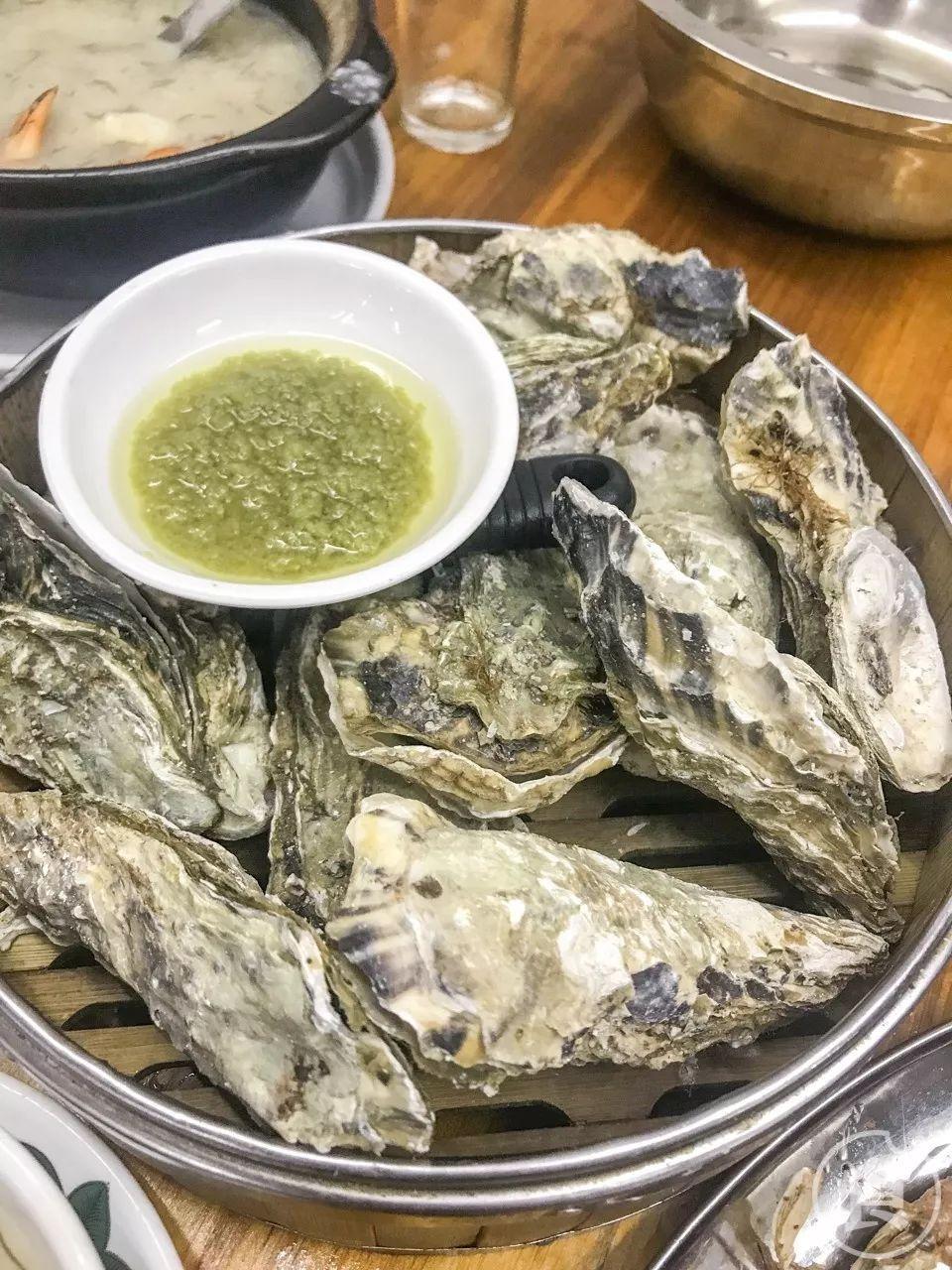 原只清蒸生蚝,鲜味十足。生蚝带壳上桌,需要自己用小刀轻轻撬开蚝壳。(撬开后,可能会有极小部分生蚝沾点泥,可以和服务员要点清水过一下。)