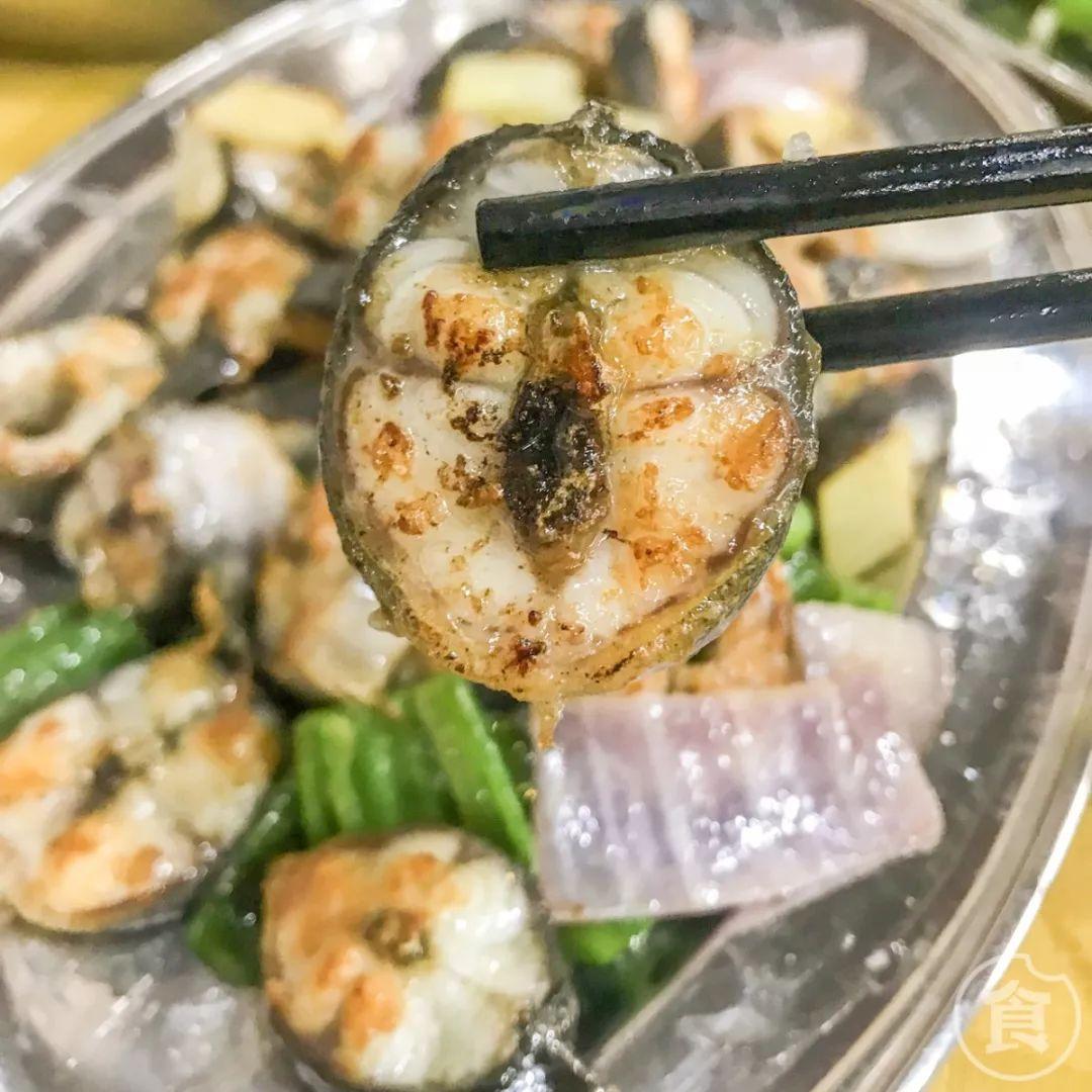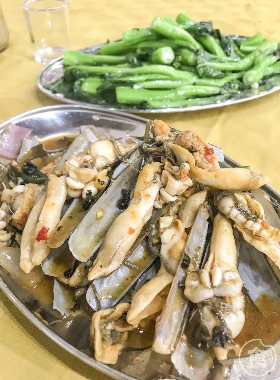 豉椒圣子皇,每一块都很大。爆炒过的圣子香气持久丰盈,肉质肥美爽滑,带点粘稠的黑豆豉酱,极其惹味,一口接一口完全停不下来。就是分量真的有点多,吃不完。味道比较鲜浓,适合3-4人吃。50多一份。