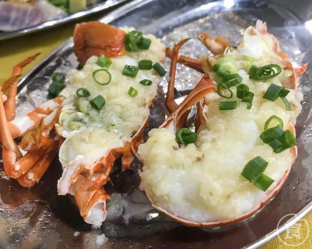 蒜蓉开边蒸龙虾,75元一只,绝对要安排得明明白白!龙虾肉上边铺满了蒜蓉,虾肉白嫩Q弹,啖啖肉非常满足,搭配蒜蓉真的是人间美味。