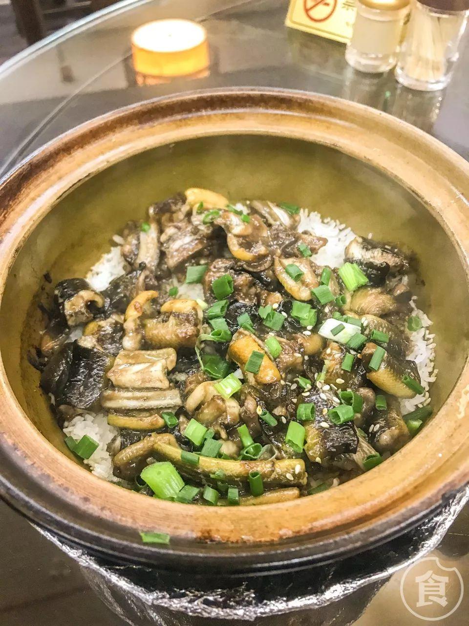 干身的白米饭吸收了鳝鱼的油润,混杂着葱香,与肉质细嫩顺滑的鳝鱼一起入口,吃完一碗还想第二碗。一锅中煲的鳝鱼饭50元,材料很足。