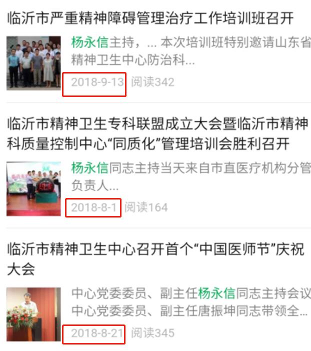 2018年的时候,杨永信还主持了多场精神治疗工作的培训班,还多次参与了市精神卫生中心的工作大会。