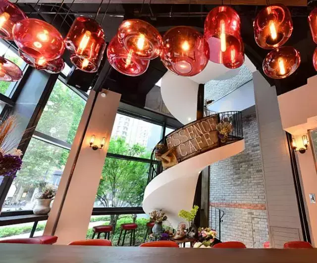 来到藏匿于静安设计中心的Seesaw Coffee旗舰店,白色的墙体,通透的玻璃,品质的吊灯,水泥质感的灰色墙面,满眼绿色的植物, 花纹独特的黑白花砖,色彩明亮造型前卫的吧台椅,原木方桌,转角处的旋转楼梯...由法国设计师Thomas Austervel操刀室内设计,看似Loft风,却融入了中国风元素。