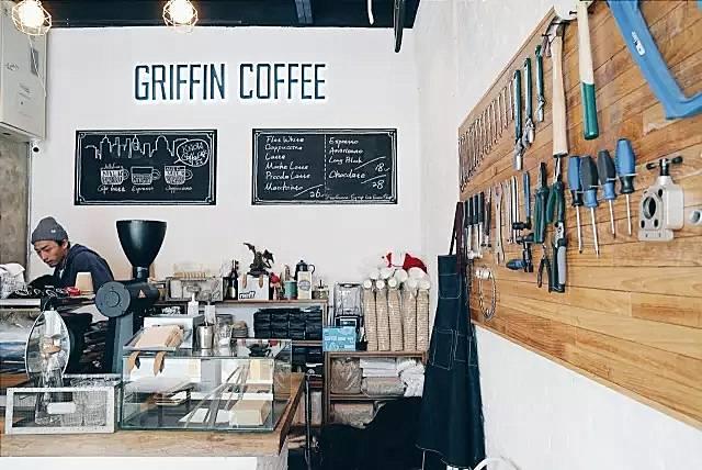 同样位于老外街永康路的Griffin coffee,在短时间内聚集了超高的人气。咖啡、死飞(极限运动自行车),将一群职业不同却有着共同爱好的人聚在了一起。GRIFFIN是一家以自行车为主题的咖啡店。悬挂在墙上的小工具让整个店面看上去标新立异, 而宽大的落地窗让你即便是坐在咖啡馆的角落里,也能清楚地欣赏到外面的风景。
