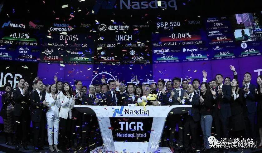 看一下老虎证券在纳斯达克敲钟的画面,没有钟!!!