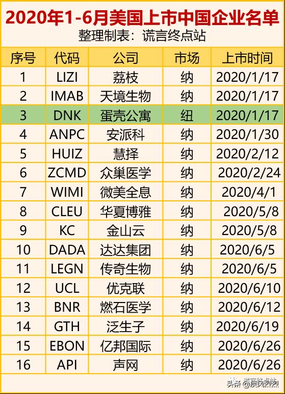 2020年1-6月,共有16家国内企业在美国纳斯达克或纽交所主板上市!其中1家上市纽交所,15家登陆纳斯达克!
