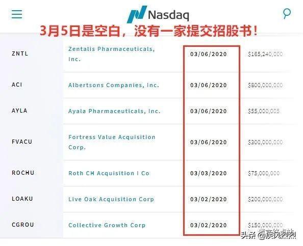 但是,2020年3月5日,没有一家公司向纽交所和纳斯达克提交招股书!