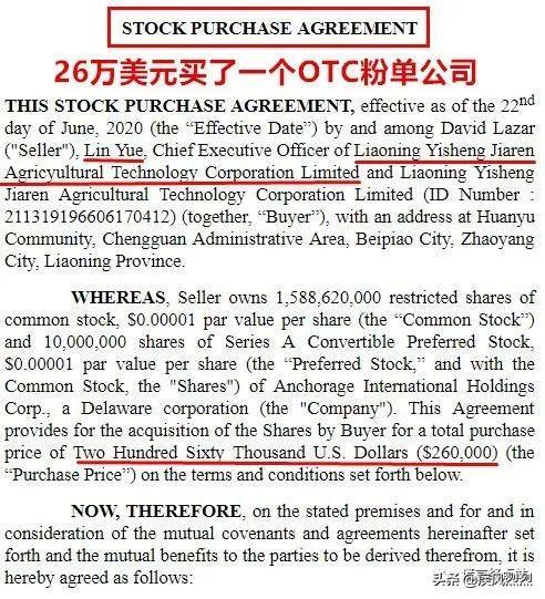 原来真相是,辽宁省某某农业科技股份有限公司岳某以26万美元的价格收购了“ANCHORAGE INTERNATIONAL HOLDINGS CORP.”,这不是一家“纳斯达克”或“纽交所”上市公司,只是一家OTC场外市场粉单公司!