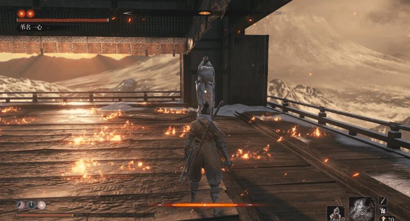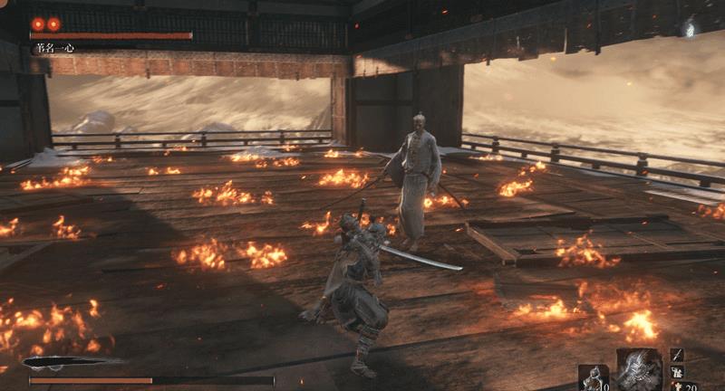 而通过四周燃起的火焰,糅合“剑气”施展的无法防御的剑术,正是苇名一心在绝境中发出的耀眼光辉,我们也可以从中感受到这位剑圣的武学造诣。
