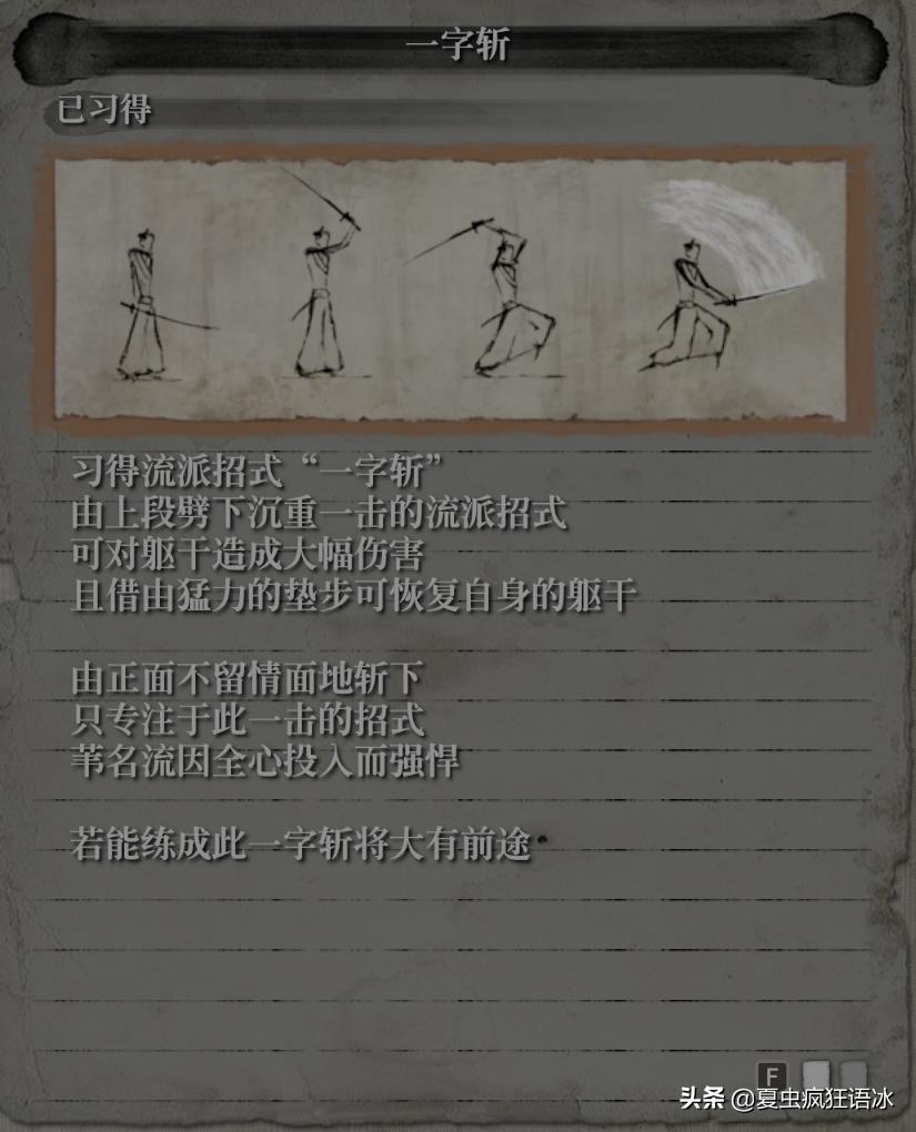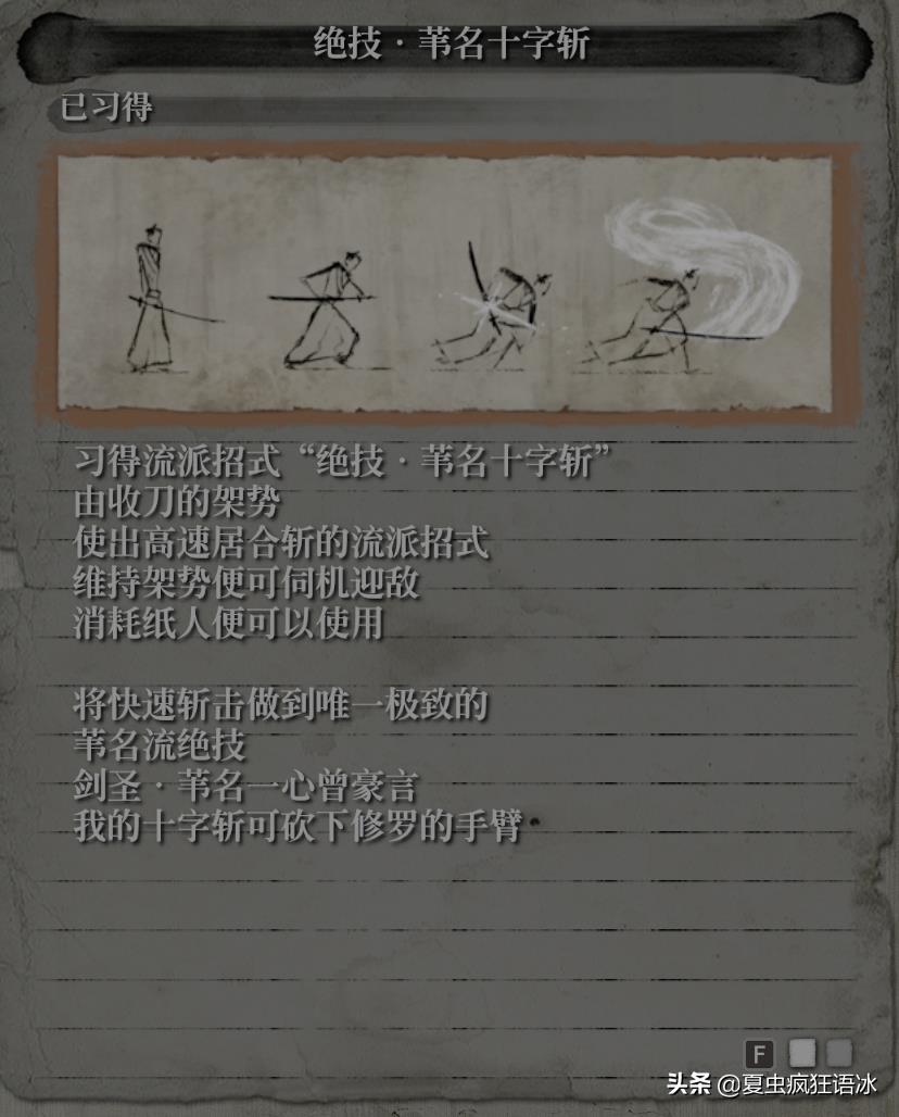 苇名十字斩,也只有永真在改良后(第二刀纵劈为单手持刀)能够完美释放,却在被格挡时会留下极大破绽。