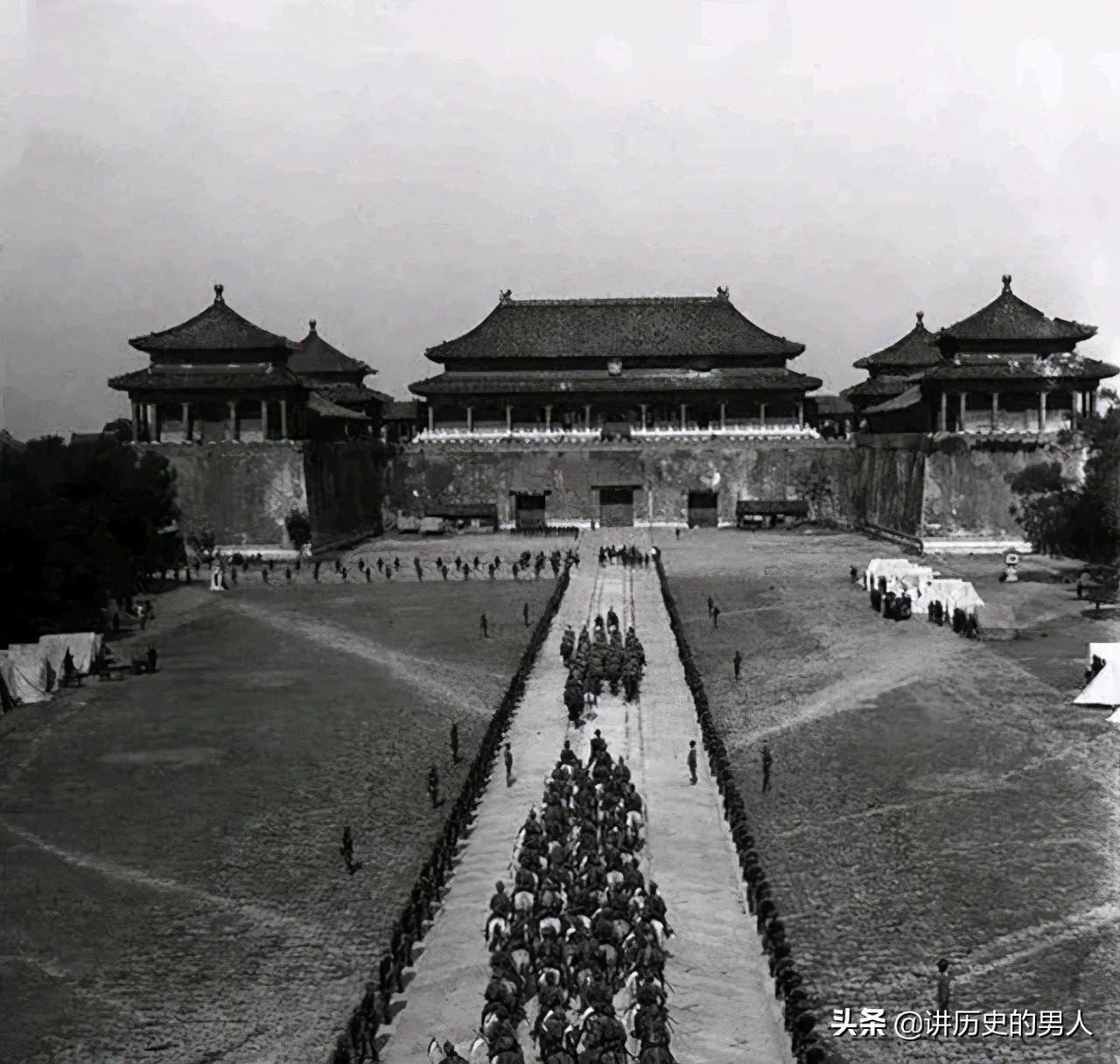 (下图为联军侵略者从午门进入紫荆城,慈禧太后落荒而逃)