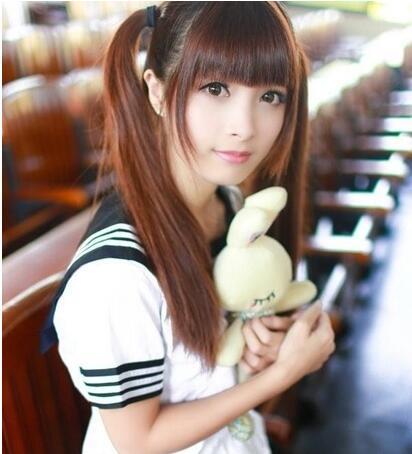 丝质顺滑的深栗色染发打造出的校园女生简单的双马尾发型,更能在简约设计之中体现出校园女生的清新甜美气质,齐刘海衬得大眼睛萌萌的,与鬓角的发丝勾勒着姣好的容颜,一身学生制服加身,其清纯的模样让人爱怜。