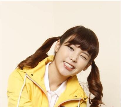 这款韩国女生简单的双马尾发型,厚重的刘海微微内扣,打造出十足的质感,非常的修颜减龄,中长的披肩头发在耳朵靠上的位置绑成两个紧致的马尾辫,马尾辫再借助卷发棒打造出卷翘的螺旋卷,让这款栗色的双马尾辫更加的灵动,体现出韩国女生的俏皮感。