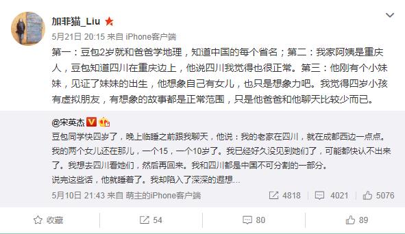 可能是看别人的事情总有种看热闹的感觉,但是当事情发生在自己身边,还是很重要的人身上,肯定会混乱啊!再看后面宋英杰发的微博,可以看出来自己的娃突然给自己说前世的事情,确实把爸爸吓的不清。