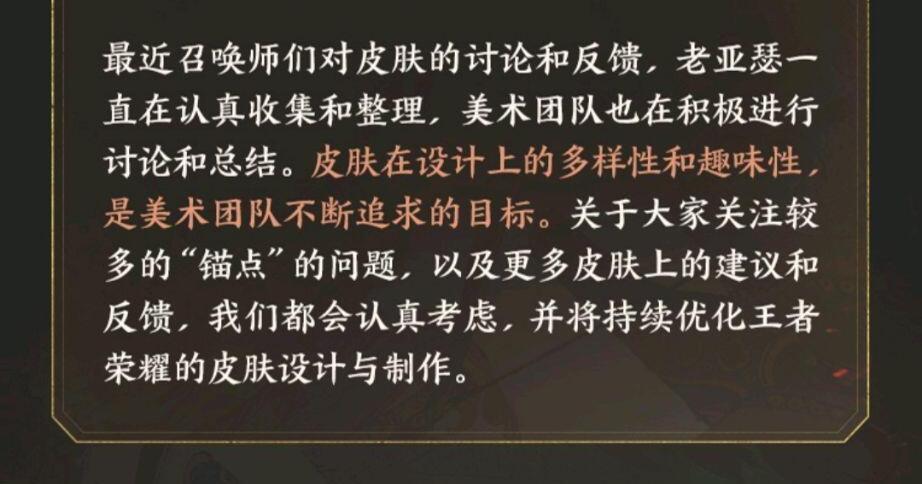 锚点的弊端现在显现得淋漓尽致,玩家已经不会再为这些低质量皮肤进行买单了,希望王者荣耀的设计师们对皮肤的设计可以不要再局限于“锚点”这个概念画地为牢、故步自封。