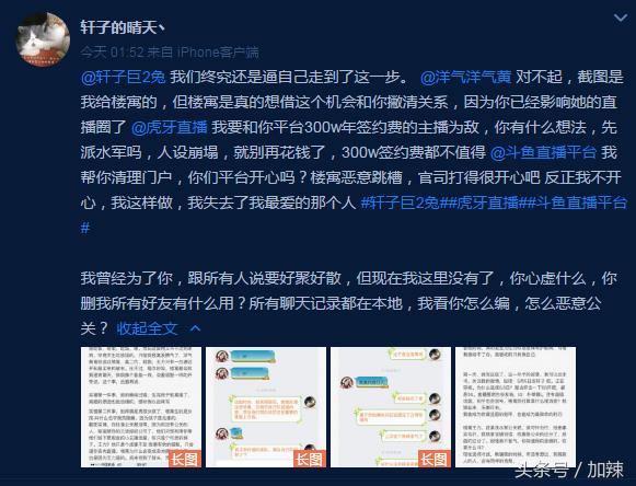 随后,轩子本人在直播间破口大骂晴天,说晴天就是一条侵犯隐私的狗,更直言没有房管认可过他,更在粉丝群里洗脑说曝出的聊天记录都是P的。这一举动引起晴天的大怒,就在刚刚,晴天再次发布微博,称轩子居然想用自己曾经教给她的办法去对付自己?