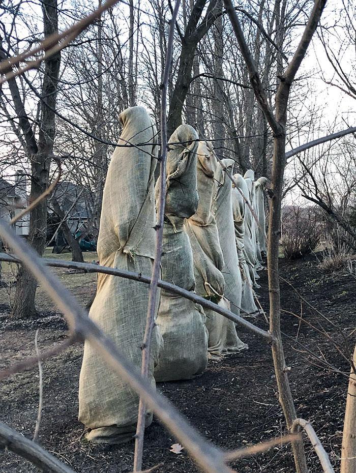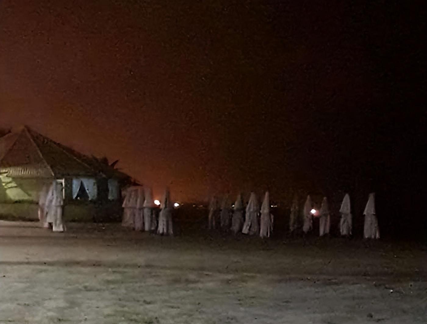 别怕,他们只是海滩上关闭的遮阳伞。