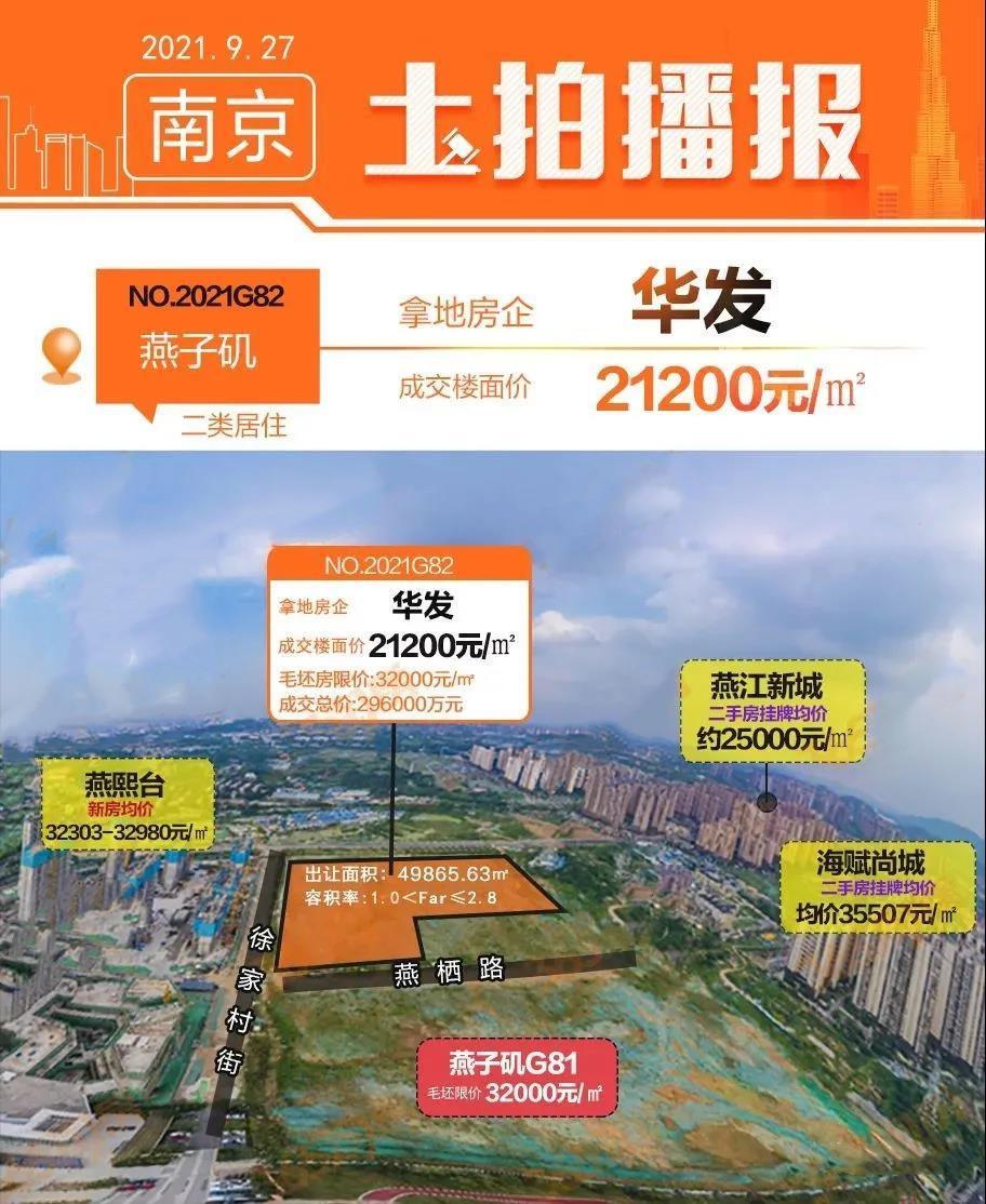 在今年南京第二轮集中土拍上,燕子矶G82地块经过35轮竞价触顶待摇号,最终被华发成功拿下,毛坯限价3.2万/平,未来加包后预计均价在3.7万/平左右。