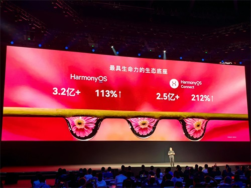 余承东表示,伴随着五大场景体验持续进化,HarmonyOS已成为最具生命力的生态系统,与此同时,搭载HarmonyOS的华为设备已达3.2亿,较去年同期增长113%,另外,目前鸿蒙智联产品发货量已经实现超2.5亿,较去年同期增长212%,这样快速的增长速度,也让余承东在发布会上兴奋地宣布:华为鸿蒙系统成长起来了!