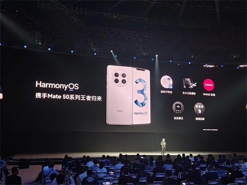 在手机方面,余承东表示HarmonyOS 3携手华为Mate50系列王者归来,受到了市场的欢迎,并且还带来超级中转站、应急模式、智感扫码、超空间压缩等功能,领先于行业。