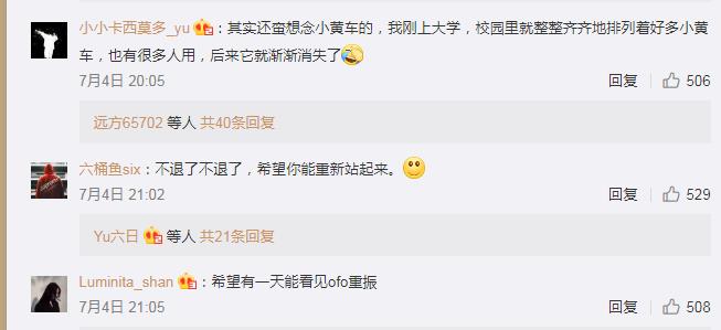有网友很有情怀:其实还蛮想念小黄车的,我刚上大学,校园里就整整齐齐地排列着好多小黄车,也有很多人用,后来它就渐渐消失了