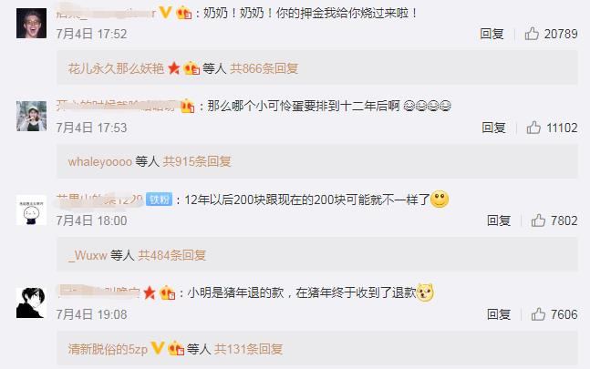 网友纷纷调侃:“奶奶!奶奶!你的押金我给你烧过来啦!” “小明是猪年退的款,在猪年终于收到了退款”
