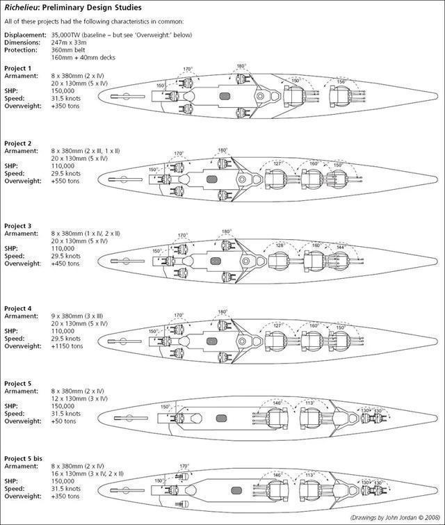 法国设计局提出的6个方案都超过了条约中的吨位限制