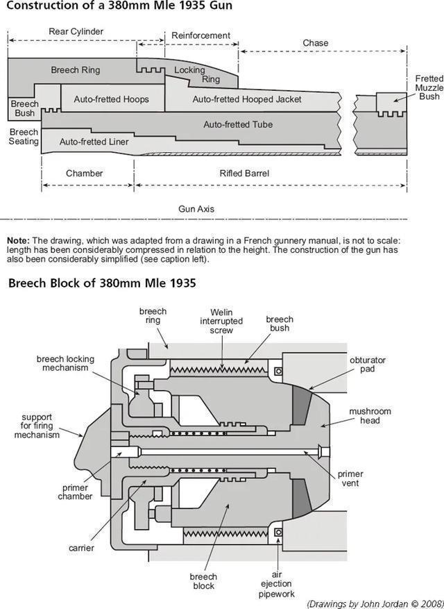 然而,法制的15英寸穿甲弹中还有一个诡异的设计。他们在穿甲弹上设置了四个气腔,里面可以装载毒气。法军希望命中敌舰后,毒气可以进行二次伤害。(实战中这种炮弹效果并不好,黎塞留号在开火时,气腔在高温下直接炸膛了)