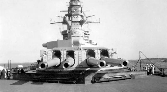 正是由于黎塞留级战列舰主炮炮塔内的2组主炮独立程度非常高,因此也有人说黎塞留级并不能算是真正的四联装炮塔,而是2座双联装炮塔被拼在了一起。(这2种观点都各有各的道理,也欢迎大家在文章下方的评论区进行讨论)