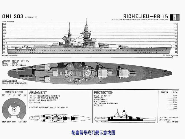 在黎塞留级战列舰上完美融合了前卫与传统的设计思路。尽管他有着许许多多的独特设计,但他整体的性能还是非常的稳定,不像其他新式战列舰都有一些非常明显的硬伤。当然我也并不是说黎塞留级战列舰的设计就是完美无缺的。