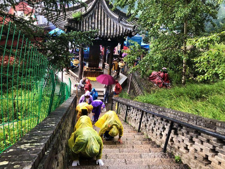 登顶的石阶路名“大智路”,依山而建,共10级1080蹬。象征着从凡人到成佛的十个境界,而每界各有“百八”的烦恼。