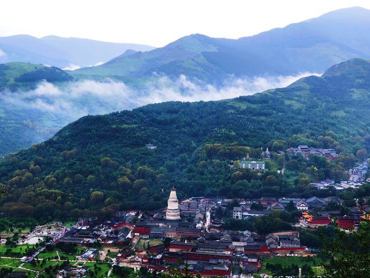 黛螺顶确实也配得上天国的想象。黛螺顶的拔地而起,对于台怀镇,甚至对于整个五台山来说,都是一个绝佳的观景台。