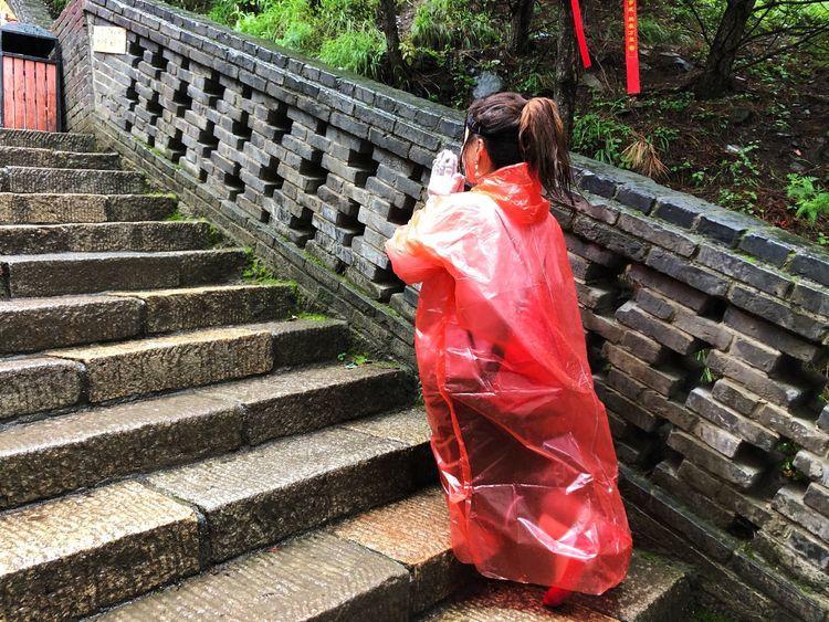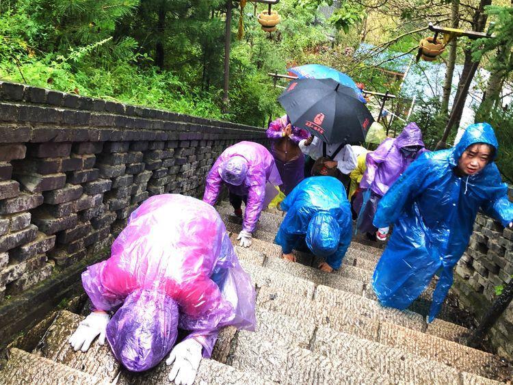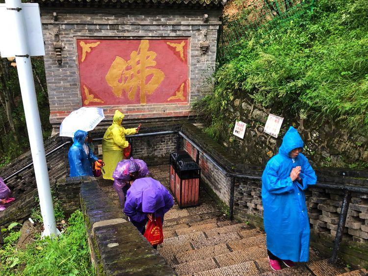我是初来兴奋,未带雨具,虽然冷雨湿身,仍脚步轻快,可身边众多虔诚的朝拜者感动了我,脚步不由地慢下来。