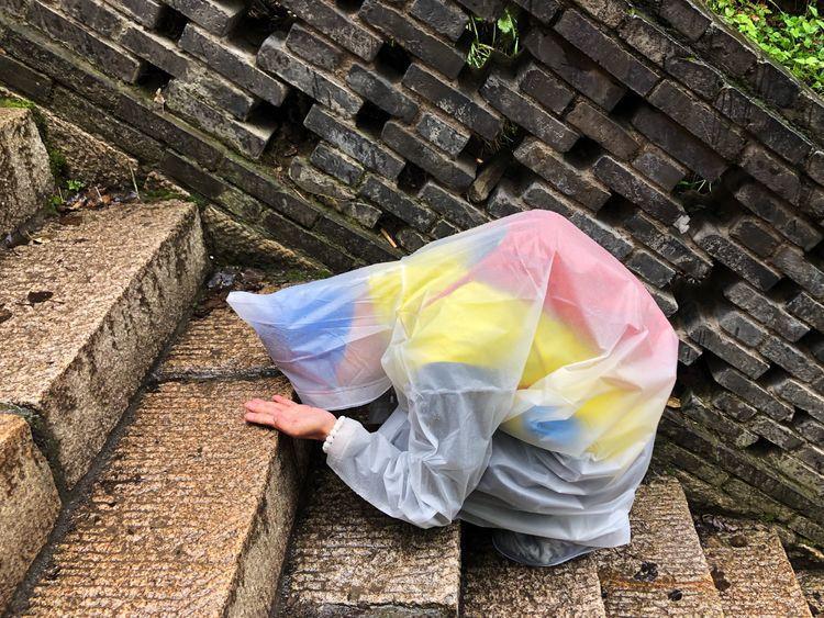 他们双膝跪在汪满雨水的台阶上,脑门实实在在地触及到坚硬的石头上,目不斜视,心无旁骛,一起一伏,脚步稳健。