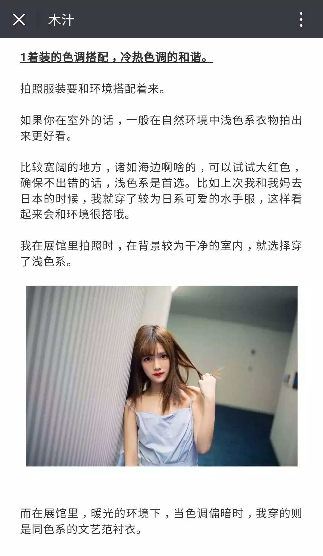 关于下一步变现,木汁说一些人对她的穿搭化妆感兴趣,想试试电商,比如找擅长美妆穿搭的合作开个美妆号。她已经在公众号文章里开始做初步尝试: