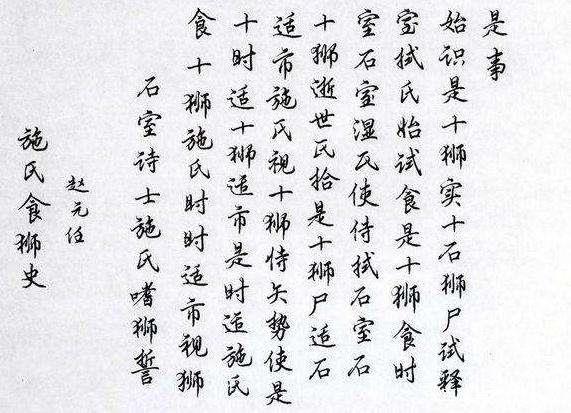 石(shí)室(shì)拭(shì),氏(shì)始(shǐ)试(shì)食(shí)是(shì)十(shí)狮(shī)尸(shī)。