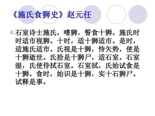 文言文绕口令《施氏食狮史》原文、拼音和普通话译文及评价