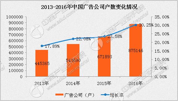 近年来,随着国家宏观经济的稳定发展,以及移动通信、互联网、社交媒体等新兴媒介的飞速发展,广告业进入了蓬勃发展时期,广告业年营业额从2005年的1,416.00亿元增长至2016年的6,489.00亿元。根据中国广告协会统计的数据,2016年中国广告公司户数为875,146户,较2015年增长30.25%。