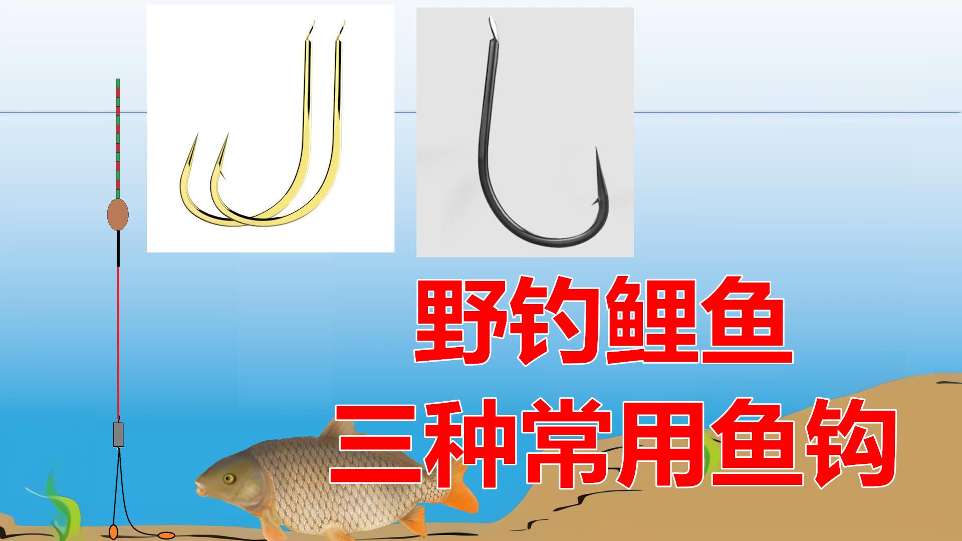 野钓鲤鱼最常用三种鱼钩,学会灵活选用,大鱼上岸更简单