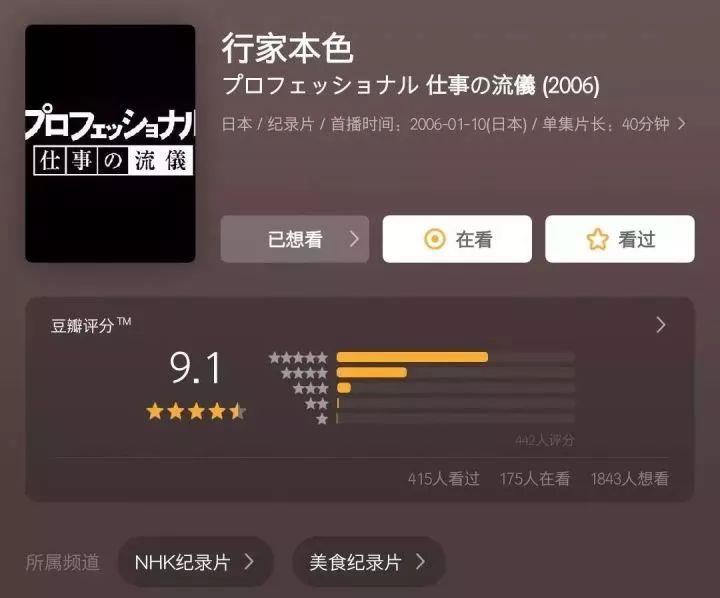 「行家本色」这一NHK的系列纪录片,就是记录了日本各行各业的行家。