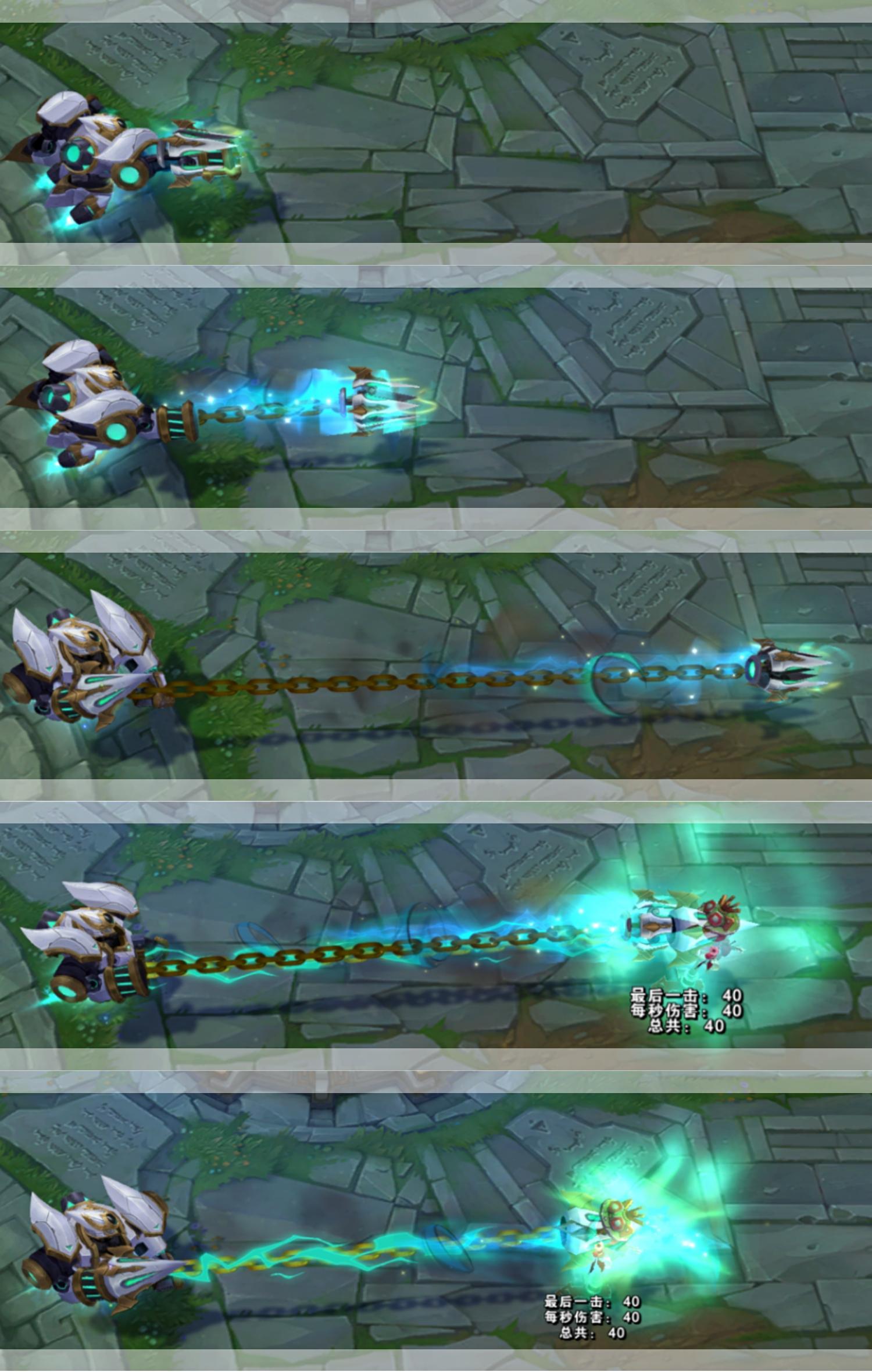 【W】:W技能开启,移动的途中,带钩子那只手会加速旋转,到最高转速时会出现青绿色电光,非常细节。