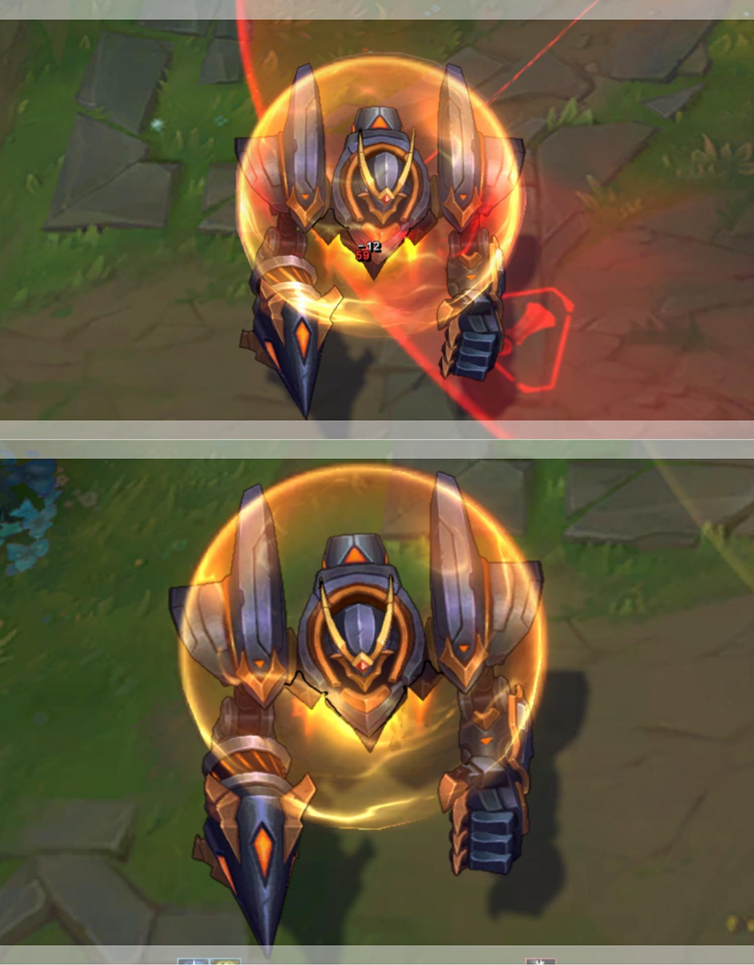 【被动】:与银白枪骑不同的是,暮色的是橙色护盾,护盾表面泛着黄色闪电。
