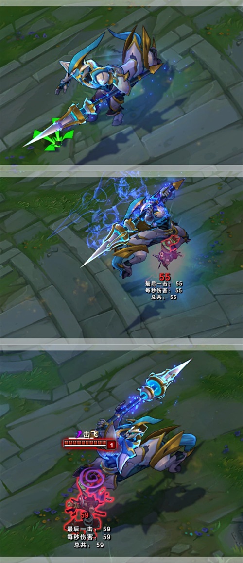 【平A】:普通攻击,这个皮肤自带打击音效,声音清脆。