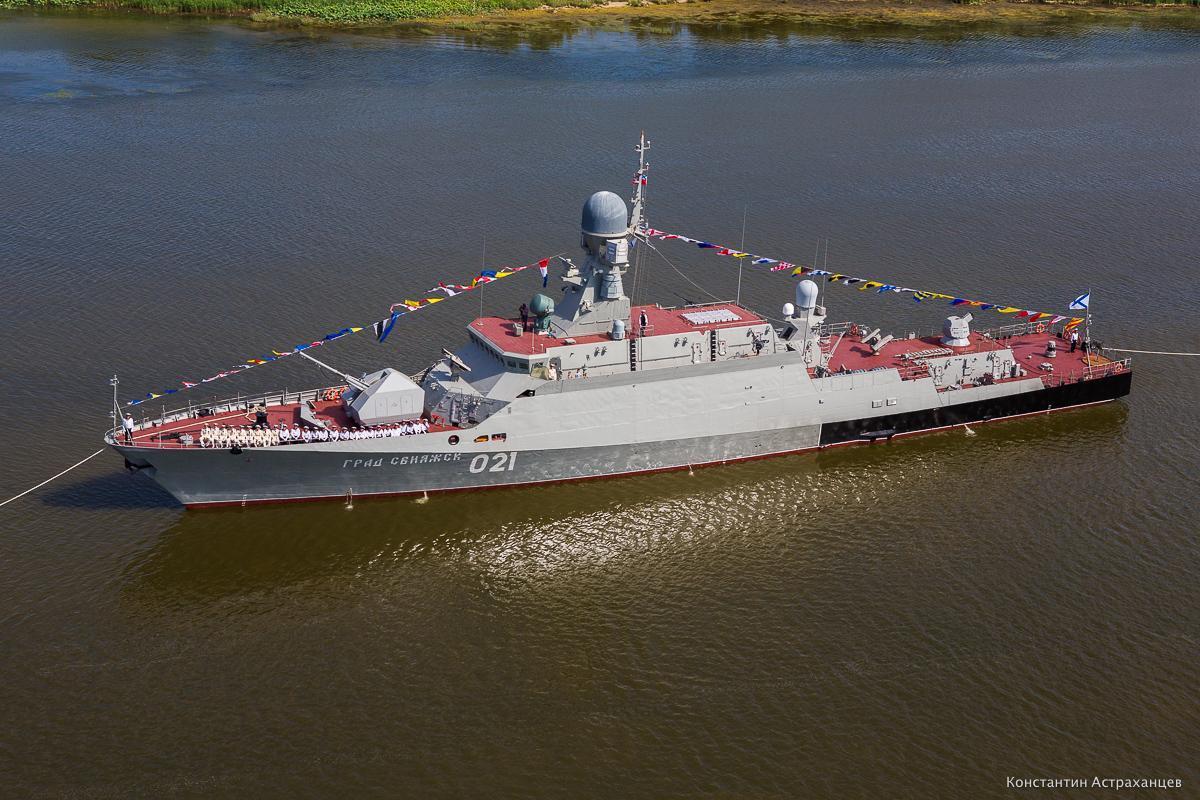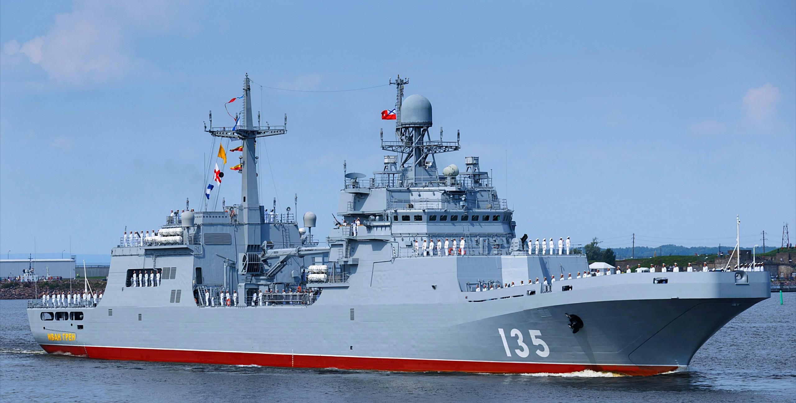 1艘22160型轻型护卫舰,基础参数排水量为1500吨,全长94米,舰体宽度14米,吃水深度为3.4米,动力系统为2台M70FRU燃气轮机和2台M70FRU和2台Kolomna 16D49柴油发动机组成的CODAG动力系统,总输出功率可达25MW,最高航速为25节,自持力长达60天。