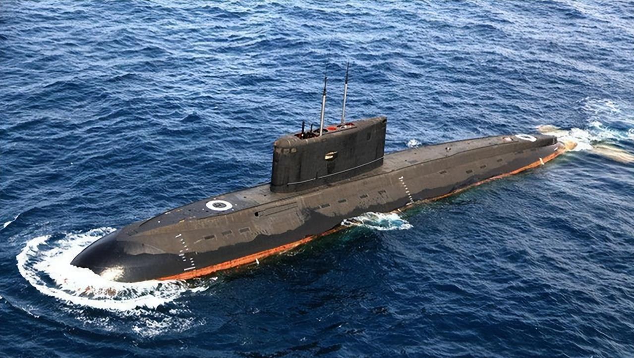 1艘877型基洛级常规动力潜艇,长72.6米,宽9.9米,水面排水量约为2325吨,水下排水量3075吨,由于基洛级潜艇的水下噪音只有118分贝,是当时最安静的潜艇,因此也获得了“大洋黑洞”的称号。自持力:45天,续航力:水上6000公里/7节;水下400公里/3节。