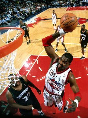 在1984年NBA选秀中,哈基姆·奥拉朱旺在第1轮第1位被休斯顿火箭队选中,职业生涯曾效力于休斯顿火箭队以及多伦多猛龙队。1993-94赛季,当赛季当选NBA常规赛MVP的奥拉朱旺带领火箭夺得NBA总冠军,他也成为了NBA历史上首位在一个赛季同时当选常规赛MVP、年度最佳防守球员以及总决赛MVP(FMVP)的球员。火箭队则连续2年问鼎NBA总冠军,分别是战胜了拥有帕特里克·尤因的纽约尼克斯队和沙奎尔·奥尼尔的奥兰多魔术队。奥拉朱旺的NAB生涯共12次入选NBA全明星阵容,6次入选NBA最佳阵容一阵,3次入选NBA最佳阵容二阵,3次入选NBA最佳阵容三阵,2次荣膺NBA年度最佳防守球员,5次入选NBA最佳防守阵容一阵,4次入选NBA最佳防守阵容二阵,2次当选NBA篮板王,3次当选NBA盖帽王。截止至2016年,他的盖帽总数位于联盟第一。