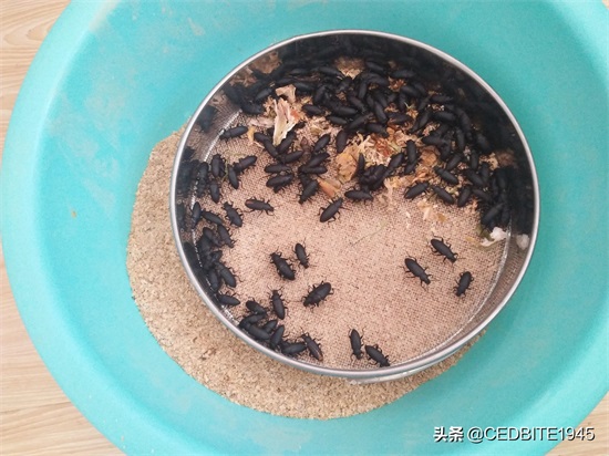 笔者曾用过织网式隔离盒、纱网袋等,但效果均强差人意,在此推荐现在使用的繁殖大麦虫的神器——不锈钢筛子,这种筛子周围由光滑的不锈钢制成,大麦虫成体无法爬出,筛子下方则为饲养幼虫的容器,虫卵可及时落下,不至于被吞食,效果极佳。但需注意的是,购买不锈钢筛子时需选取目数合适的筛网(如20-30目),笔者购买的筛网的目数过小(目数越小,空隙则越大),导致大麦虫成虫的前腿极易陷于其中导致折断。
