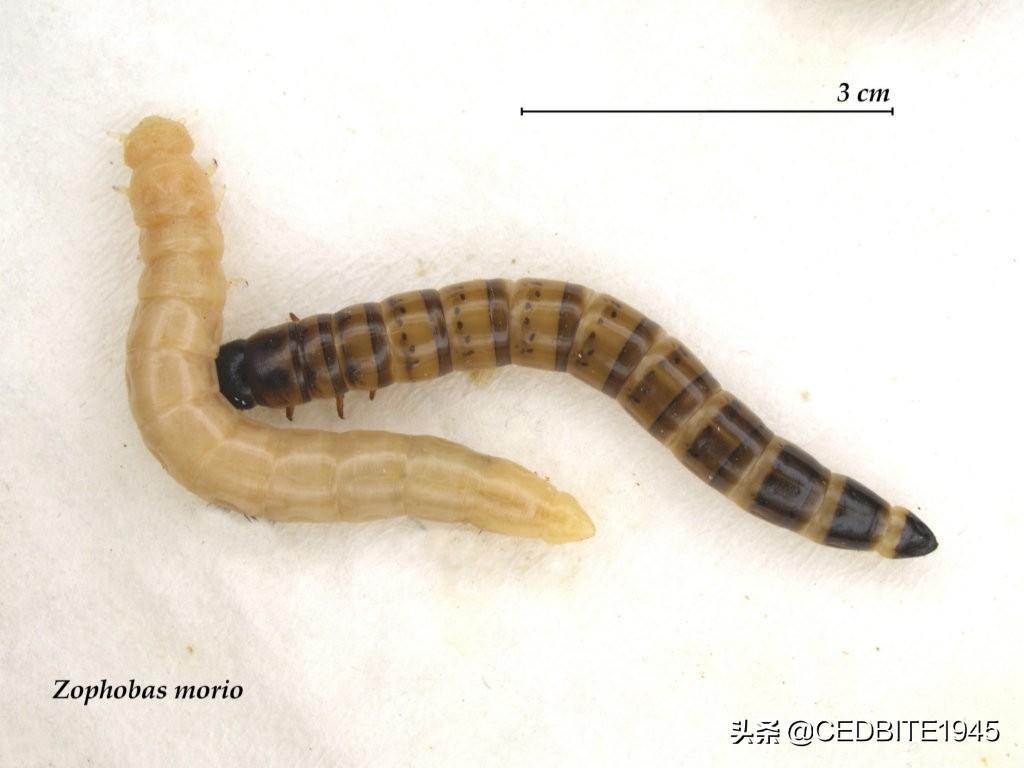 学名Zophobas morio的大麦虫曾是一种非常高端、昂贵的饲料,早在10年前曾以1元/2只的高价作为鱼饲料出售,仅次于蜈蚣。大麦虫又称超级面包虫、超级麦皮虫,属节肢动物门昆虫纲鞘翅目拟步甲科,其外形与面包虫非常相似,可以说是面包虫的放大版,一般体长可达5-6厘米左右,比面包虫长、粗2-3倍,因此得名“超级面包虫”,也是一种容易自给自足,且非常干净方便的鱼饲料/爬行动物饲料,有着如下多种优点: