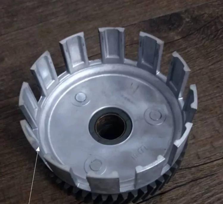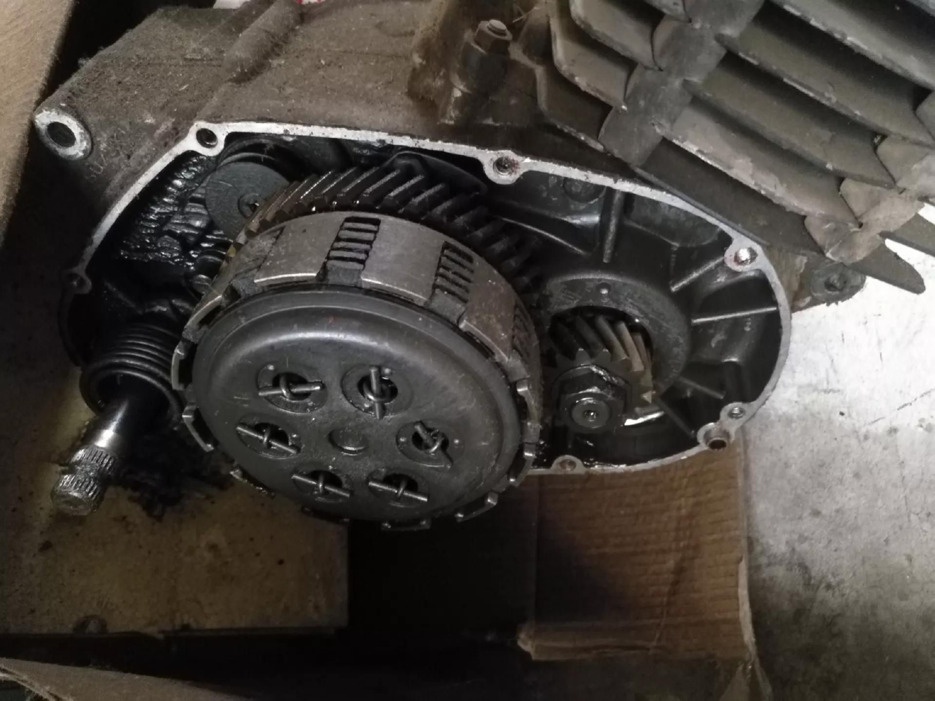 超大号的多片离合器,摩擦片加上钢片共有十片。最大限度地将动力输出到副轴上,这也是金城铃木离合器手柄捏起来重的主要原因。